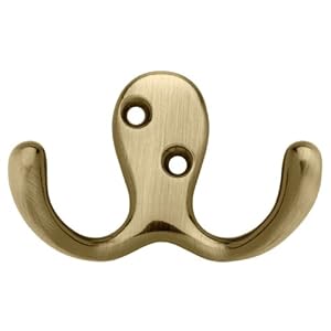 Product Description : From the ManufacturerThis double prong robe hook offers practical storage in a small package. Finished in Antique Brass, this hook is ideal for use in bedrooms, bathrooms, and closets. Holds a maximum weight of 35 lbs when mounted to solid wood or studs. Product Description : Antique Brass Finish, Double Prong Robe Hook.